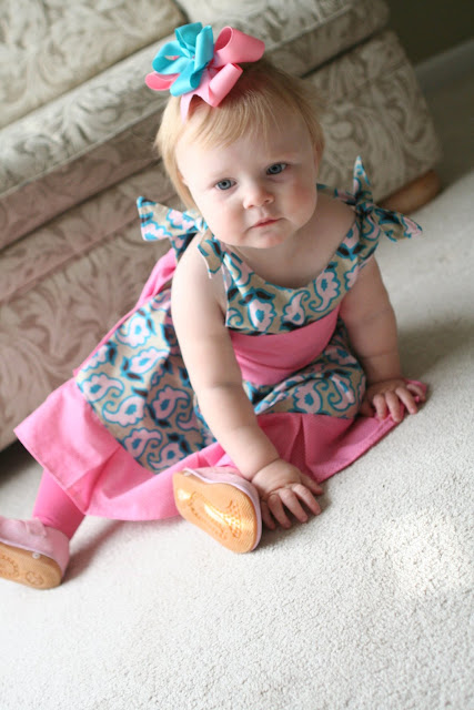 I also didn't have the greatest day to photograph. It's nasty outside and little girl was not happy so I had to bribe with cheerios. Hopefully the cuteness of this outfit is translated in the pictures I was able to snap!