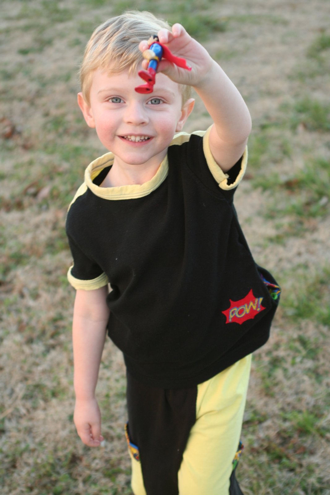 I think the pants are so fun! When Christian put them on he said "Is this my black leg? And is this my yellow leg?!" So cute! The pockets add a little more spunk with the top of the pocket sewn with the same Superman fabric.