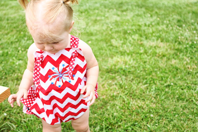 I wanted you to see these adorable ruffles and the crossing straps that knot in the front! This makes the romper a perfect fit and I'll bet you that Eva Mae will be able to wear it next year too!