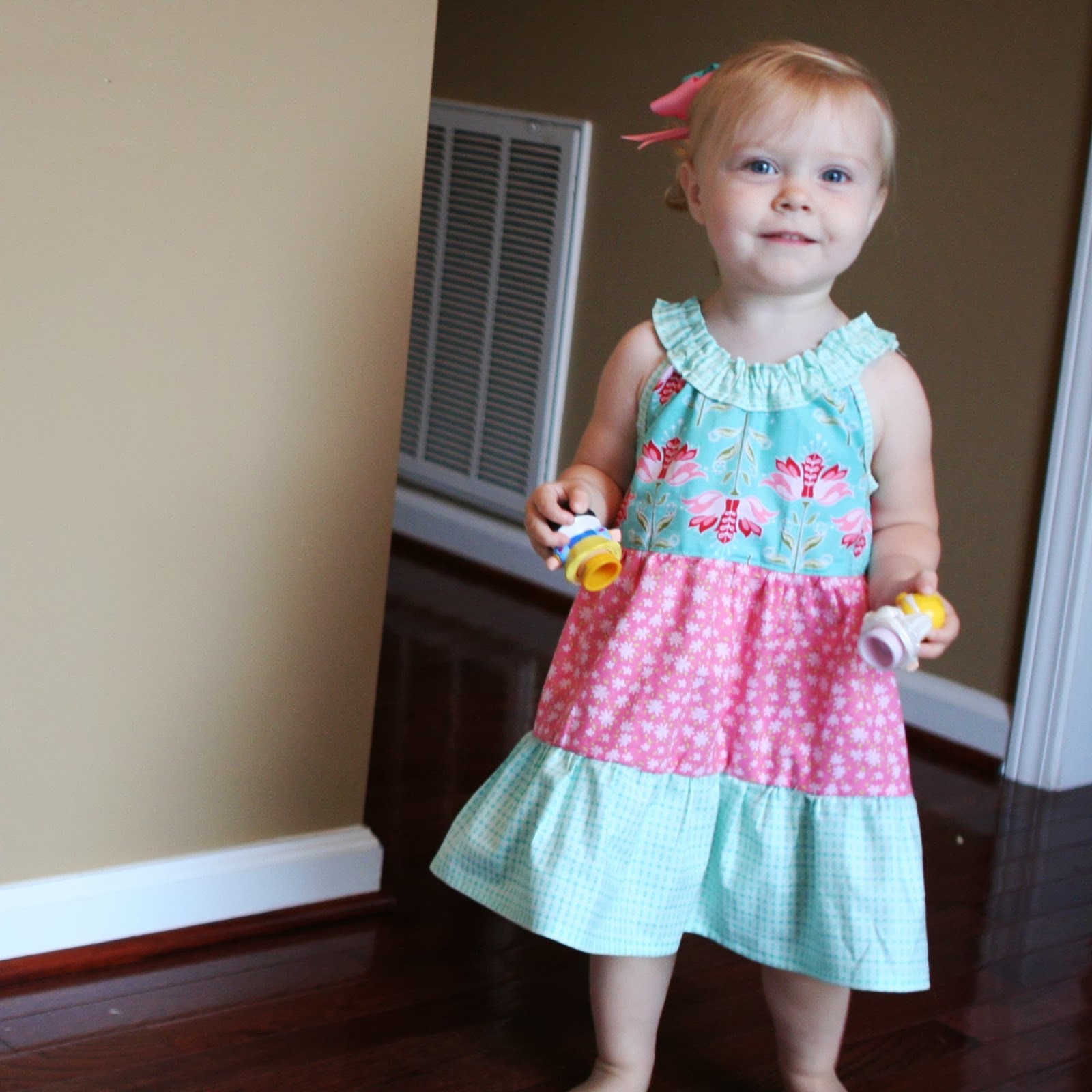 The pattern calls for 3 tiers for a maxi dress length but if you are sewing for a little girl younger than a 3T I would keep it at 2 tiers only. Little ones are still getting up and down a lot and I notice if Eva Mae wears a longer dress she has trouble standing up without stepping on her dress.